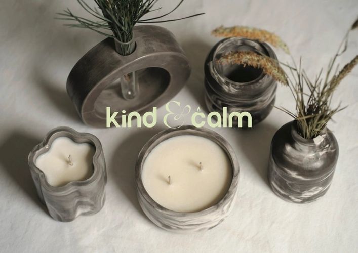 At Kind & Calm, we offer a wide variety of handcrafted candles made from natural ingredients. Each candle is designed to create a soothing atmosphere, perfect for relaxation and meditation.